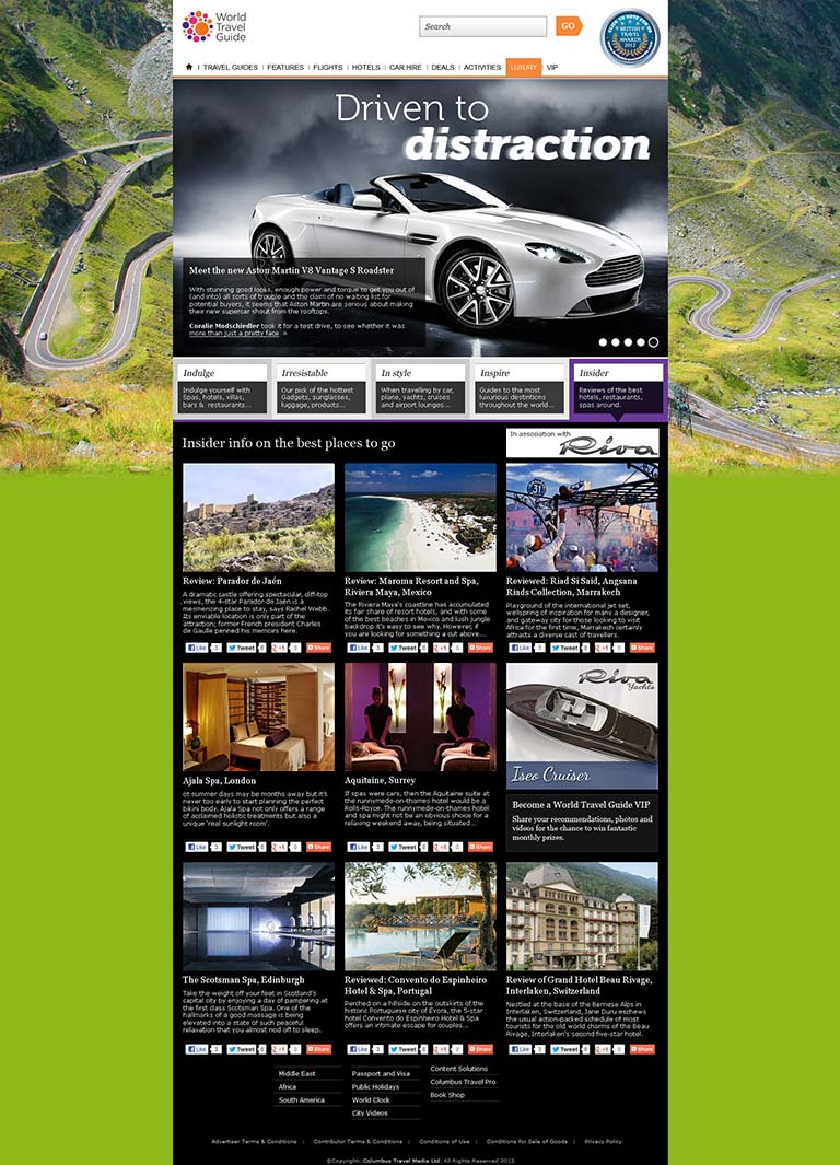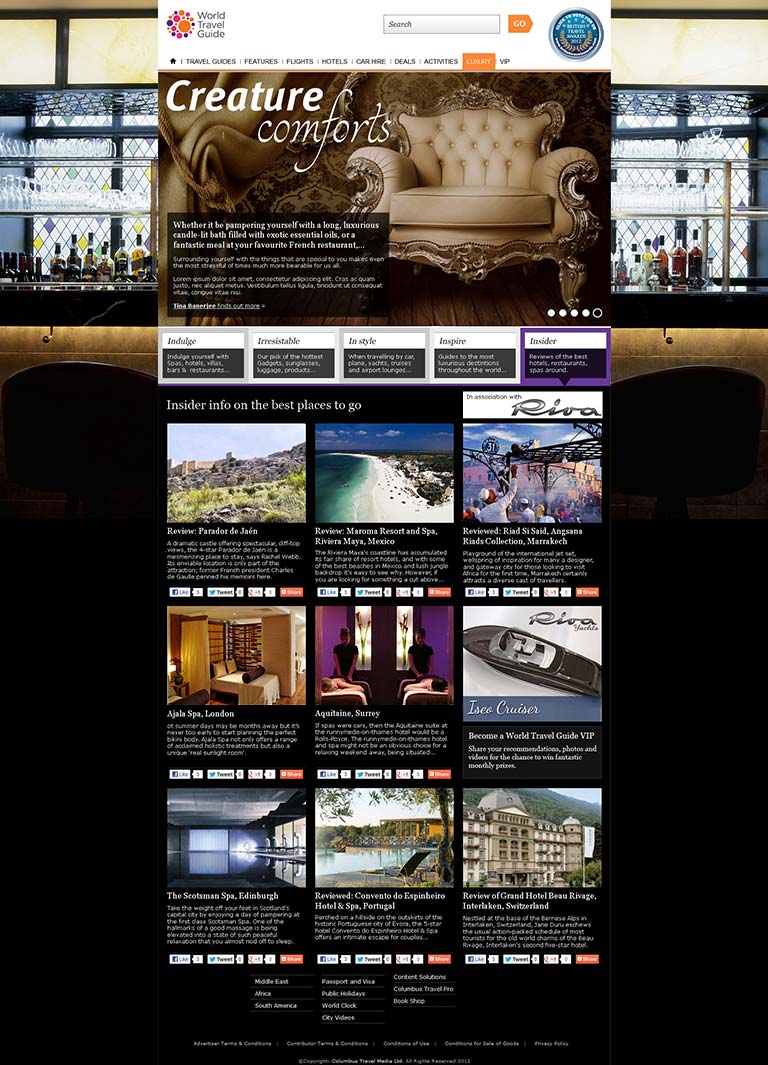 Later on in my time at Columbus, I was taken onto the World Travel Guide project permanently as Senior web designer ahead of a large redesign of the site.